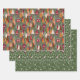 Three complementary designs in one convenient set, folk art and Scandinavian-inspired aesthetic with a warm green and gold color palette that coordinates beautifully. Generous sheet size for wrapping various gift sizes.