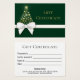 Luxuriöses und reichhaltiges Urlaubsprojekt mit einer herrlichen Weihnachtsbaum-Silhouette mit goldenen Schneeflocken. Die Einrichtung ist mit einem weißen goldenen Geschenkbogen auf einem grünen Hintergrund geschmückt. Dieses festliche Geschenkgutschein ist ideal für kleine Firmen oder für kleine Gruppen.