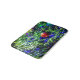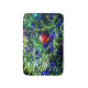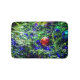 Grüner Weihnachtsbaum, blaue dekorative Lichter und roter Zierkugel mit frischem Schnee. Fröhliche und fröhliche Stimmung. Frohe Weihnachten und glückliches Neues Jahr. Drucke und Geschenke für jeden zum Spaß und gute Laune. Horizontale oder landschaftlich orientierte Produkte und Souvenirs.