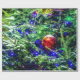 Grüner Weihnachtsbaum, blaue dekorative Lichter und roter Zierkugel mit frischem Schnee. Fröhliche und fröhliche Stimmung. Frohe Weihnachten und glückliches Neues Jahr. Drucke und Geschenke für jeden zum Spaß und gute Laune. Horizontale oder landschaftlich orientierte Produkte und Souvenirs.