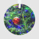 Grüner Weihnachtsbaum, blaue dekorative Lichter und roter Zierkugel mit frischem Schnee. Fröhliche und fröhliche Stimmung. Frohe Weihnachten und glückliches Neues Jahr. Drucke und Geschenke für jeden zum Spaß und gute Laune. Produkte und Souvenirs im quadratischen Format.
