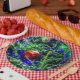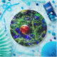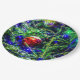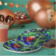 Grüner Weihnachtsbaum, blaue dekorative Lichter und roter Zierkugel mit frischem Schnee. Fröhliche und fröhliche Stimmung. Frohe Weihnachten und glückliches Neues Jahr. Drucke und Geschenke für jeden zum Spaß und gute Laune. Produkte und Souvenirs im quadratischen Format.