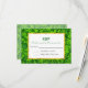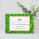 Ein Frühjahr thematischer Hochzeit RSVP mit einem Feld von üppig grünen Klee Blätter. Diese niedlichen kleinen Pflanze haben kleine Wassertröpfchen, die ihnen einen frischen Frühlingsstil verleihen. Oben platziert ist ein Rahmen mit Ihrer UAWG info und einem goldenen Rahmen für IMITATE.