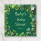 Grüne Kleeblatten bemalten sich um einen grünen Hintergrund. Der Text ist weiß mit grüner Kontur und einem helleren grünen Schatten, als eine vollständig anpassbare Babydusche für eine Mutter.