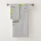 Freuen Sie sich auf eine elegante Touch in der Badezimmereinrichtung mit einem Set von Badetüchern der Muschel Green Conch. Das Handtuchdesign besticht durch eine lebendige Vintage Conch-Muschel und eine individuelle Gestaltung mit Ihrem Familiennamen vor einem hellgrauen Hintergrund. Zusätzliche Wohngestaltungen sind mit diesem Design verfügbar.