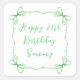 Dieser niedliche und skurrile Geburtstagsaufkleber ist mit einem niedlichen, grünen Band-Rahmen versehen. Der Text kombiniert handgeschriebene Skripte mit serifenlosen Schriftart für ein stilvolles und modernes Design.