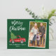 Modern Brush Script Wasserfarbe Vintag Red Truck mit Weihnachtsbaum Frohe Weihnachtsfamilie Foto Holiday Card - Forest Green, Snowflake Green Craft Tape