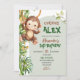 Green Curious Monkey Safari Theme Birthday Einladung