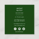 Mit diesen eleganten Visitenkarten in trendigem Grün und Weiß fördern Sie Ihr Restaurant, Ihre Bäckerei, Ihren Catering oder Ihren Koch. Mit einer Silhouette von Messer, Gabel und Löffel in Weiß über einem bedrückten grünen Quadrat, darunter zwei Textzeilen in klassischer Schrift. Fügen Sie Ihre Details und Kontakt und Social Media-Konto auf der Rückseite in Weiß auf einem kontrastierenden dunkelgrünen Hintergrund.