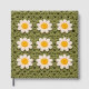 This charming crochet-inspired image features a repeating granny square pattern with white daisies and golden yellow centers on a rich green background. Perfect for lovers of handmade aesthetics, retro floral designs, and cozy cottagecore style. Ideal for use on stationery, home décor, fabric prints, phone cases, or gifts, this design evokes warmth, creativity, and vintage charm. A great choice for crafters, crochet fans, and anyone who appreciates floral textile patterns with a soft, handmade feel.