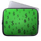 Dieser Laptop-Sleeve verfügt über eine Reihe von Dollarzeichen ($) in verschiedenen Stilen verstreut über einen grünen Hintergrund. Eine tolle Möglichkeit, Ihre Liebe des Geldes zu zeigen oder sich über die Kosten Ihres Laptops zu informieren!