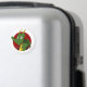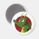Magnet mit Abbildung eines niedlichen, kleinen, grünen, fliegenden Drachen, in rotem Kreis, niedliche Fantasie / Märchendesign für Kinder von Maxi Harmony