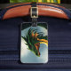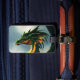 Porträtprofil eines fantasiegrünen Drachen, Blauer Himmel hinter dem Drachen