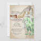 Diese individuelle Party Einladung zeichnet sich durch ein Fantasy-Motiv im Aquarellstil aus. Ein Bild eines grünen Drachen wird vor einem Märchenschloss abgebildet. Die Berge erscheinen in der Ferne hinter dem Schloss. Der Hintergrund ist ein verblasstes Pergament-Papier-Design, mit verziertem Goldrahmen, der einer Seite aus einem alten Buch ähnelt.