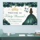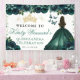 Green Dress Brunette Princess Floral Quinceanera Banner