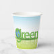 A globe in the word green forming green earth world. This design looks really effective on these Paper Cups