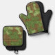 Green Efeu Gold Black Brown Kariert Ofenhandschuh & Topflappen-Set