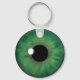 Green Eye Iris - GREI100 © Sunny Mars Designs. Cooler, lustiger, individueller, grüner Augapfel-Neuheit, klassischer runder Schlüsselanhänger oder Keyring mit einer trendigen, modernen, schönen, einzigartigen, freaky, gruseligen, seltsamen und verdrillten grafischen Abbildung einer auffallenden großen grünen realistischen Augenliris eines Auges. Weitere Farbeyeball-Designs sind ebenfalls im Handel erhältlich.