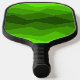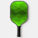 Dieses Paddelpaddel hat eine geometrische Form von fünf Grüntönen, die horizontal verlaufen.