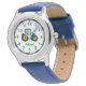 Kinderuhr aus Edelstahl mit blauem Lederarmband