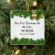 Green Fir Tree First Christmas Verheiratet Foto Keramik Ornament bietet Tannenbaum-Blätter, goldene Weihnachtsbälle Dekoration, 2 Fotos & Textvorlage.Ein perfektes Design für Neuvermählte, um ihre ersten Weihnachten nach der Ehe zu feiern.Bitte klicken Sie auf Personalisieren Button, um es mit Ihrem eigenen Text und Foto anpassen.