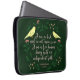 Dieser grüne Laptop-Särmel ist perfekt für Buchliebhaber und enthält das Zitat "Ich bin kein Vogel; und kein Netz umschließt mich: Ich bin ein freier Mensch mit einem unabhängigen Willen." von Charlotte Brontë's Jane Eyre umgeben von einem Blumendesign mit grünen Blätter, rot-rosa Blume und gelben Vögeln. *Bitte beachten Sie, dass das Zazzle-Wasserzeichen, das in der Zoomvorschau angezeigt wird, nicht auf dem gedruckten Endprodukt angezeigt wird. © Bookish and Wonderful