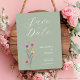 Mit dieser eleganten Wildblume Save the Date Einladungskarte kündigen Sie Ihre Hochzeit an. Mit einem Blumenstrauß und einer wunderschönen Schriftzeichen-Kalligraphie Set diese Karte eine Atmosphäre für eine schicke, minimalistische Hochzeit. Erhältlich als digitaler Sofortdownload und/oder gedruckte Einladungen. Verwenden Sie die blaue Schaltfläche "Personalisieren", um Ihre Informationen hinzuzufügen. Design von Ana Garza/Kardz Studio. Wenn Sie Fragen haben, nehmen Sie bitte Touch mit mir durch den Zazzle Chat.