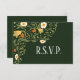Diese dekorative, blumengeschmückte RSVP-Karte ist eine grüne Hochzeitsankündigung mit einem Blumenmotiv, das Blume und Weinreben auf dunkelgrünem Hintergrund wirft. Bitte beachten Sie, dass dies eine entsprechende Einladung zur Hochzeit enthält, die Sie hier sehen können: https://www.zazzle.com/green_floral_wedding_invitation-256325537398693372