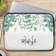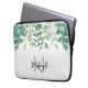 Dieser botanische Laptop-Ärmel ist mit Aquarelleukalyptus und anderem Blattwerk in Grün dekoriert. Einfach mit Ihrem Namen oder Monogramm anpassbar. Original Wasserfarbe © Michele Davies.