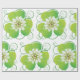 Green Four Leaf Clover with White Floral Bloom Geschenkpapier