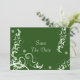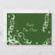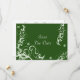 Dieser grüne Blüh weist Save the Date weiße blühte und Wirbel auf grünem Hintergrund auf.