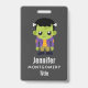 Ein Namensschild mit einem lustigen Halloween-Bild mit einem grünen Frankensteinmonster.