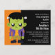 Ein Halloween-Geburtstags-Einladung-Postkarte mit einem lustigen Halloween-Bild mit einem grünen Frankensteinmonster.