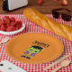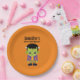 Halloween-Teller mit einem lustigen Halloween-Bild mit einem grünen Frankensteinmonster.