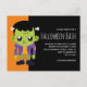 Eine Postkarte mit einem lustigen Halloween-Halloween-Party mit einem grünen Frankensteinmonster.