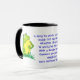 Eine weiße Ringer-Tasse mit schwarzem Rand und Griff und einem grünen Frosch vorne und hinten, aus einer Aquarellillustrierung von Judy Adamson. Zwischen den beiden Fröschen ist der erste Vers des Kinderzimmers Rhyme, 'Ein Frosch, den er a-wowürde gehen..' in blauer Schrift.