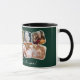 Entdecken Sie unsere raffinierten Weihnachtsferien-Tasse, wo Tradition und modernes Design aufeinander treffen. Diese Tasse zeigt eine Collage Ihrer 10 Lieblings-Fotos, ist Set vor einem zeitlosen grünen Hintergrund. Personalisiert mit "Frohe Weihnachten" Urlaubswünsche, Ihrem Familiennamen und dem Jahr, wird diese Tasse eine Touch von Extra-Magie zu Ihren Festlichkeiten bringen.