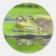 Grüne Frösche auf einem Lilienpolster in einem Sumpfaufkleber.