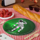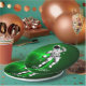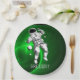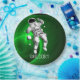 Digitale Kunstgrafik zeigt den schwarz-weißen Astronauten mit Planeten auf grünem galaxischem Hintergrund. Personalisieren mit Namen oder anderem Text