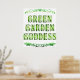 Das Sprichwort der Göttin Green Garden ist in Vintagen Blumenbriefen in Grün- und Gelbtönen gehalten.