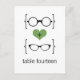 Die geeky Brillen Hochzeitspostkarte mit ihrem grünen Herz, ergänzt durch zwei geeky Brillenpaare, ein männliches Paar und ein mädchenhaftes Paar, das den Bräutigam und die Braut repräsentiert. Diese ungünstige, aber raffinierte Tischkarte eignet sich perfekt für Ihre Hochzeit! Einfach zu anpassen, fügen Sie einfach den personalisierten Text Ihrer Wahl. Klicken Sie auf den Button "Anpassen", um weitere Personalisierungsoptionen zu finden.