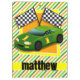 Cooles, farbenfrohes Kinderwagen, grün, karierte Flagge, Auto-Renndesign auf grünen, gelben, orangefarbenen, weißen Streifen Muster. Perfektes Geschenk für Baby, Kleinkind, Kinder, Kinder, Jugendliche oder Erwachsene! Personalisiert die Entwurfsvorlage durch Hinzufügen eines untergeordneten Namens oder benutzerdefinierten Texts. Besuchen Sie unseren Shop, Birthday Party House, für mehr großartige personalisierbare Girl-Produkte!