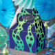 Dieses tropische Party-Giftkasten weist die Flecken und Streifen eines grünen Giftfrösches auf