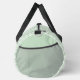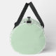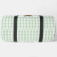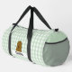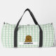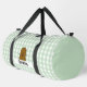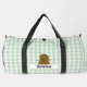 Bezaubernde Duffeltasche mit einer niedlichen, fröhlichen Cartoon braunen Kartoffel. Der Hintergrund ist ein niedliches klassisches Muster von Gingham in Grün und Weiß. Eine Vorlage unter der Kartoffel, um Ihren Namen hinzuzufügen.