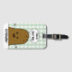 Ein schönes Gepäckanhänger mit einer niedlichen, fröhlichen braunen Kartoffel aus Cartoon mit "This is your bag" in einer weißen Sprechblase über seinem Kopf geschrieben. Der Hintergrund ist ein niedliches Gingham Gingham Gingham-Muster in Grün und Weiß. Eine Vorlage unten, um Ihren Namen hinzuzufügen.