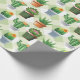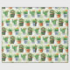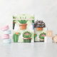 Saukkulente aus der Hauspflanze auf grünem Gingham-Hintergrund, Aloe vera, Prickly Pear Kaktus, Golden Barrel Kaktus und Aeonium.