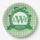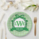 Green Gingham Griechischer Key Bow Vollmongramm Pappteller