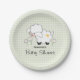 Ein bezauberndes Babylamm umgeben von Gänseblüten duscht personalisierte Papiertüte mit einem Wolllamm mit gelbem Herz und hellgrün-weißem Gingham-Muster. Diese geschlechtsneutralen, individuell anpassbaren Teller eignen sich perfekt für die junge Mutter, die einen kleinen Jungen oder ein kleines Mädchen erwartet. Artwork © Chrissy H. Studios, LLC. Alle Rechte vorbehalten.