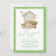 Green Gingham Locally Grown Market Baby Dusche. Verfügbar in digitaler Form und gedruckt. Feiern Sie die Mama-to-be mit diesem Thema Markt-Design mit einem Bauer-Markt-Stall, Blumen, Produktion, Babykleidung und eine Storch-, Bunny-und Biene-Aquarell-Illustration, die an die Worte, die auf einem feinten Karo Hintergrund. Locally Grown befindet sich in einem modernen Set. Personalisieren Sie die Erholung der Wörter ganz einfach nach Bedarf. Mit einem grünen Gingham-Pattrenhintergrund auf jeder Seite.