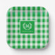 Green Gingham Monogram Wappen Custom Pappteller